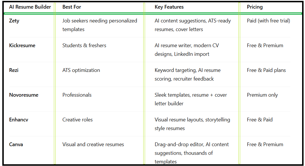 Best AI Resume Builders for Job Seekers - table1