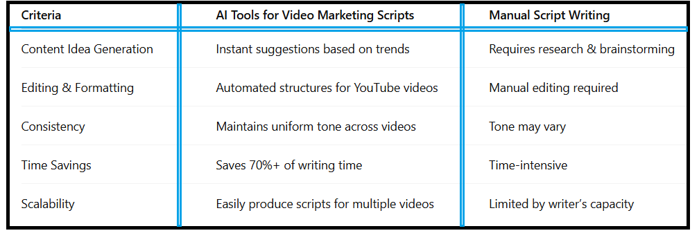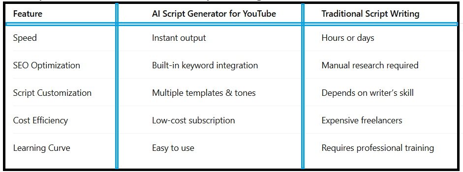 This demonstrates the value of using the Best AI Tools for YouTube Script Writing over traditional manual methods.