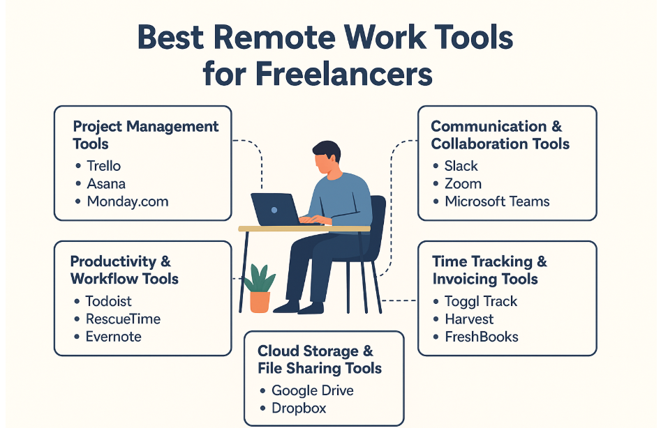 Best Remote Work Tools for Freelancers. Freelancing has become one of the fastest-growing work trends in the modern digital economy. With more professionals choosing independence over traditional office jobs, the demand for the best remote work tools for freelancers has skyrocketed. Unlike office-based employees, freelancers rely entirely on digital solutions to communicate with clients, manage projects, track time, and secure their data.