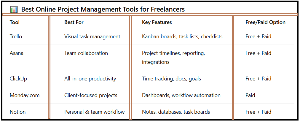 Managing multiple projects across different clients can quickly become overwhelming. Online project management tools and online task management apps help freelancers stay organized and meet deadlines without confusion.