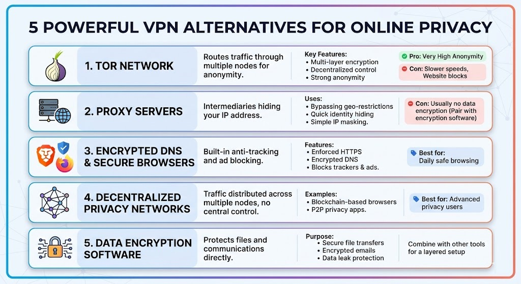 If you want simplicity, VPNs still win. But if you want control, flexibility, and stronger anonymity, these alternatives to VPN for secure internet access are incredibly powerful.