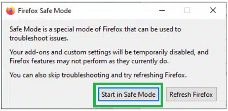 If you get the Print Preview Error, then open the Firefox in Safe Mode. It will ensures that the most essential settings of Firefox are active and all the add-ons are disabled. To do so: