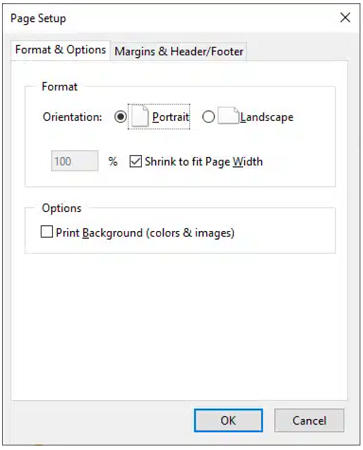 5.In the Format & Options tab, change the Orientation to Portrait.