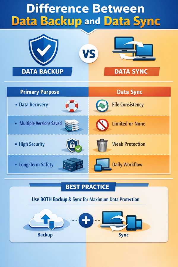 Understanding the Difference Between Data Backup and Data Sync is more than a technical detailโitโs a practical skill that helps you protect files from data loss, recover data after system failure, and keep files updated across devices without regret later.