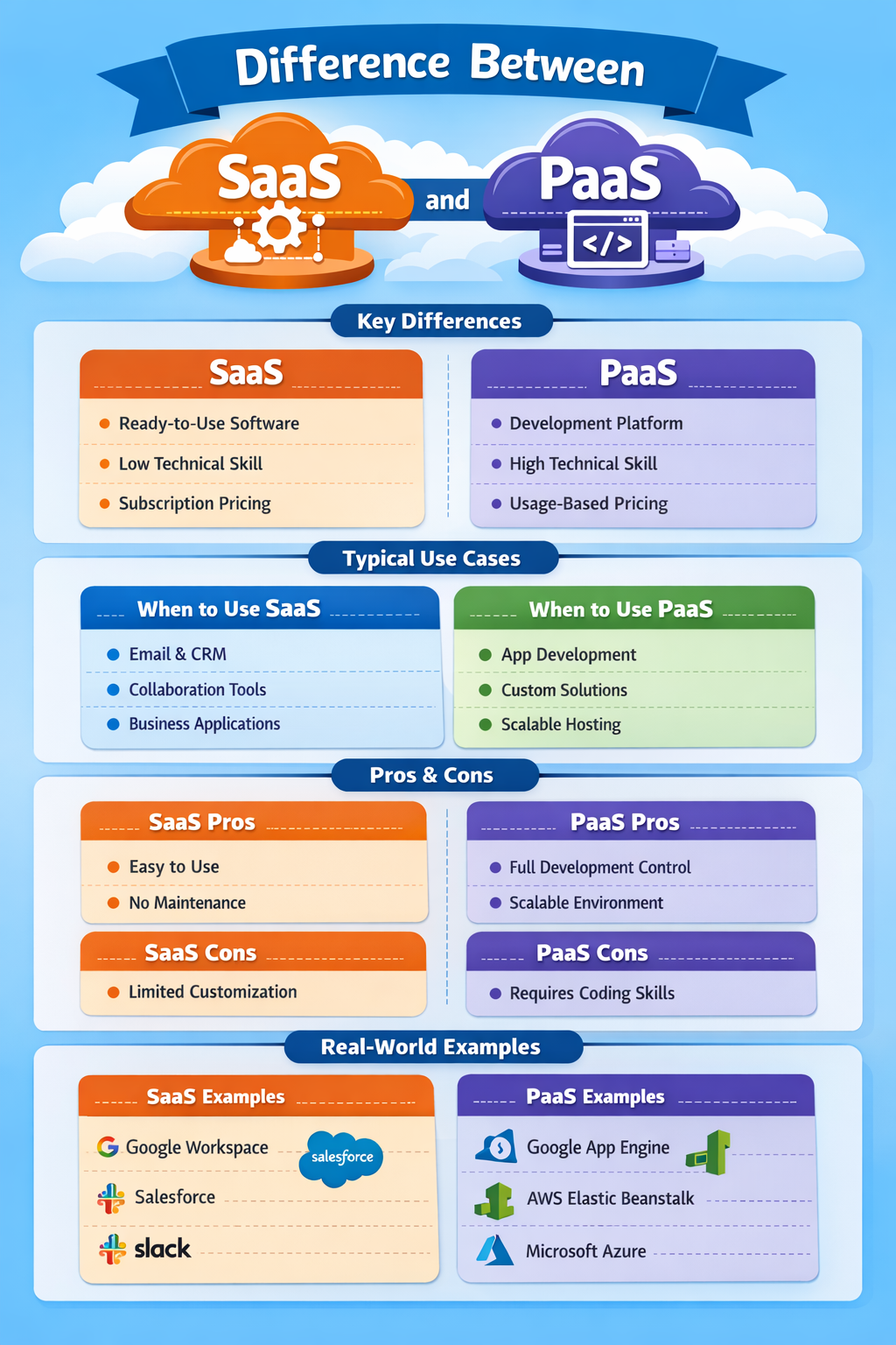 The Difference Between SaaS And PaaS comes down to intent. If you want convenience, SaaS wins. If you want creation, PaaS dominates. Many modern businesses rely on both to stay competitive, agile, and scalable.
