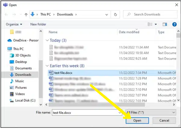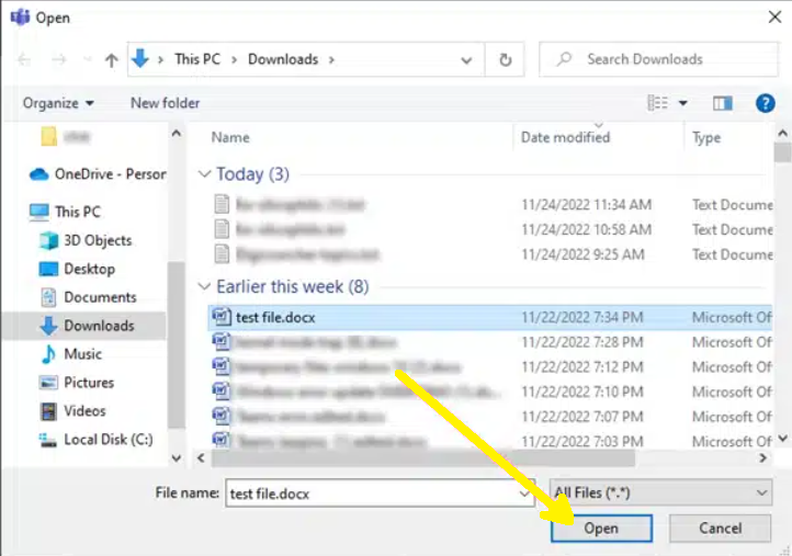 4.Select the file and click Open.