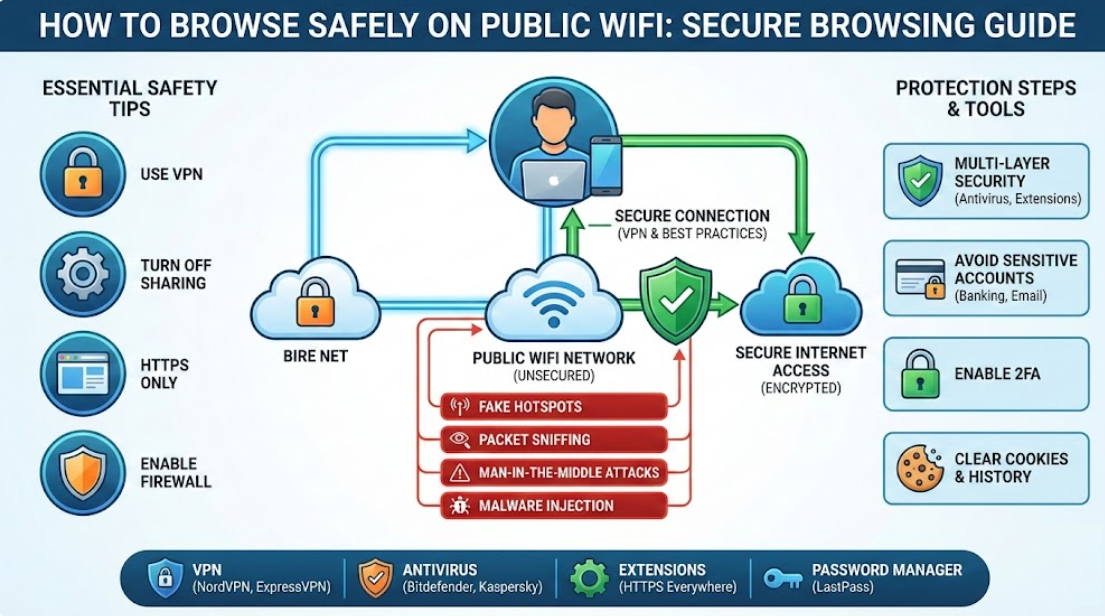 If you donโt know How to Browse Safely on Public WiFi, you expose yourself to multiple threats.