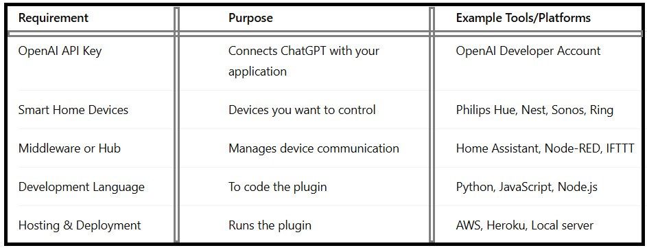 Key Requirements for Building a ChatGPT Plugin for Home Automation: