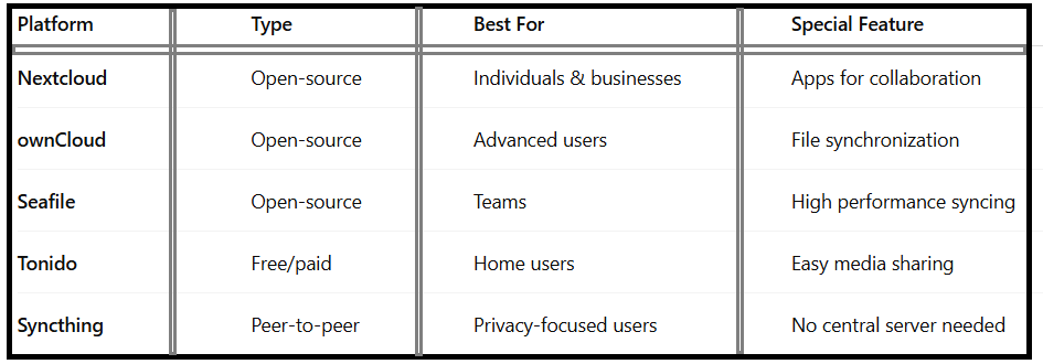If you want the best self-hosted cloud platforms, Nextcloud and ownCloud are industry favorites because they allow features like calendar integration, file sharing, and advanced security.