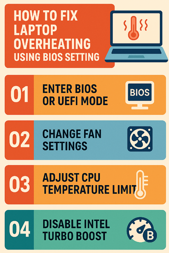 How to Fix Laptop Overheating Using BIOS Settings. Laptop Overheating is the most common issues faced by laptop users. It not only affects system performance but can also lead to permanent hardware damage if not addressed in time. While software solutions and cleaning dust buildup are common fixes, many users overlook BIOS-level configurations that directly impact thermal performance. In this article, we’ll show you how to fix laptop overheating using BIOS settings effectively and safely.
