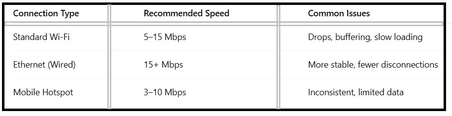 -Use a wired Ethernet connection for stable speed.