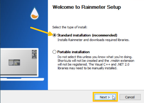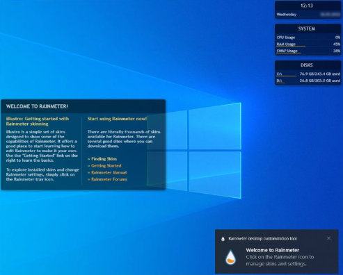 After the installation, follow the steps to set the Rainmeter: