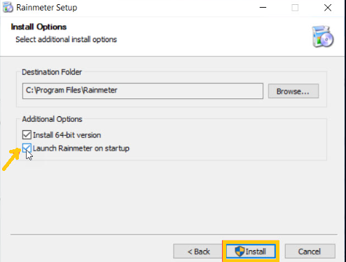 8.Check Launch Rainmeter on Startup box, otherwise you will have to start it manually every time your PC restarts.