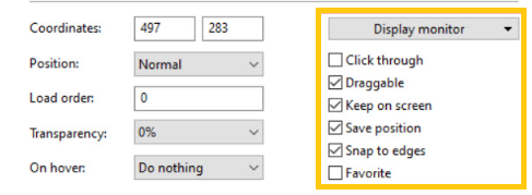 8.Under the Display Monitor option, check the Draggable, Click-through, Keep on-screen boxes to make the changes.