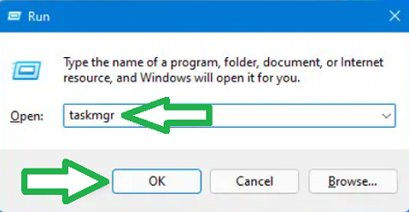 4.Then, type taskmgr (for taskmgr.exe, the actual program’s filename) on an empty line.