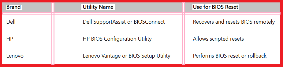 These tools help with Dell/HP/Lenovo BIOS reset without requiring internal access.