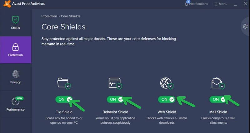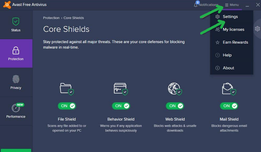 7.Now, whenever you open the antivirus, it will say ‘All antivirus shields are off’.