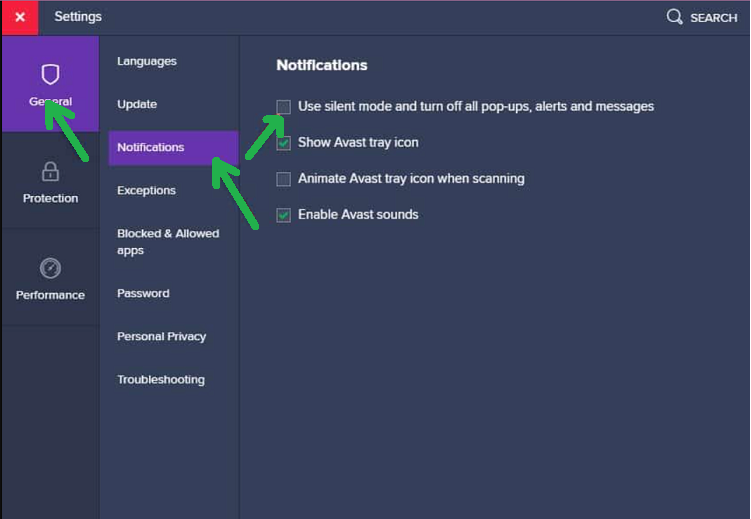 Many users are not interested in the pop-up, warning and important messages that appear on the screen, while Avast is running in the background. To disable Avast pop-up messages: