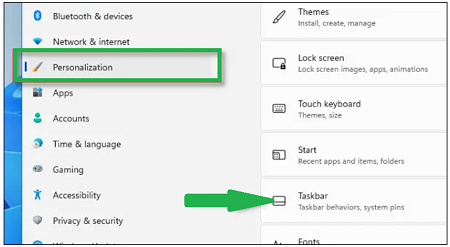 4.Then click Taskbar.