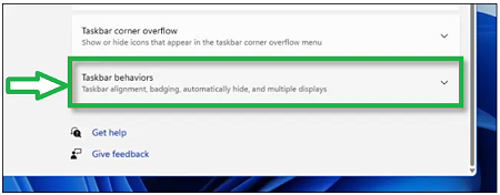 5.In Taskbar settings, select Taskbar Behaviors.