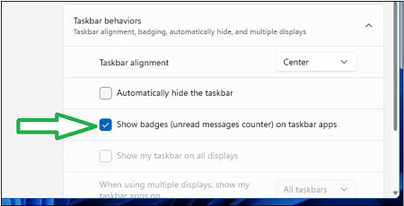 6.Check the box next to Show badges (unread messages counter) on taskbar apps option.