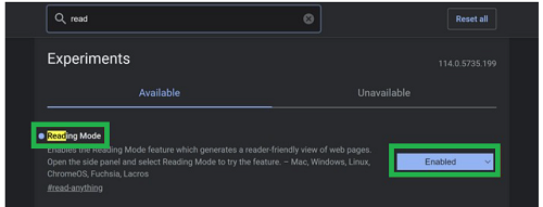 To enable Reader Mode in Chrome, you must visit the experimental flags page, not settings. To do so: