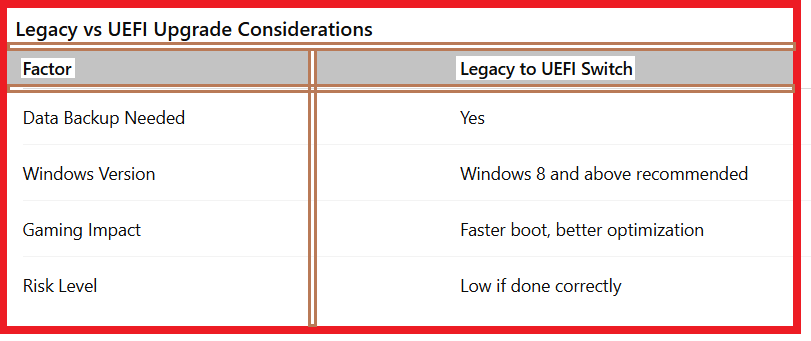 Legacy vs UEFI Upgrade Considerations: