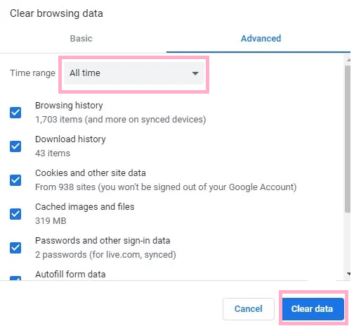2.Press the Ctrl + Shift + Delete keys on your keyboard. This will open the Clear browsing data tab for both Chrome and Firefox.