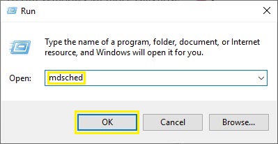 2.Type mdsched. Click on OK button.